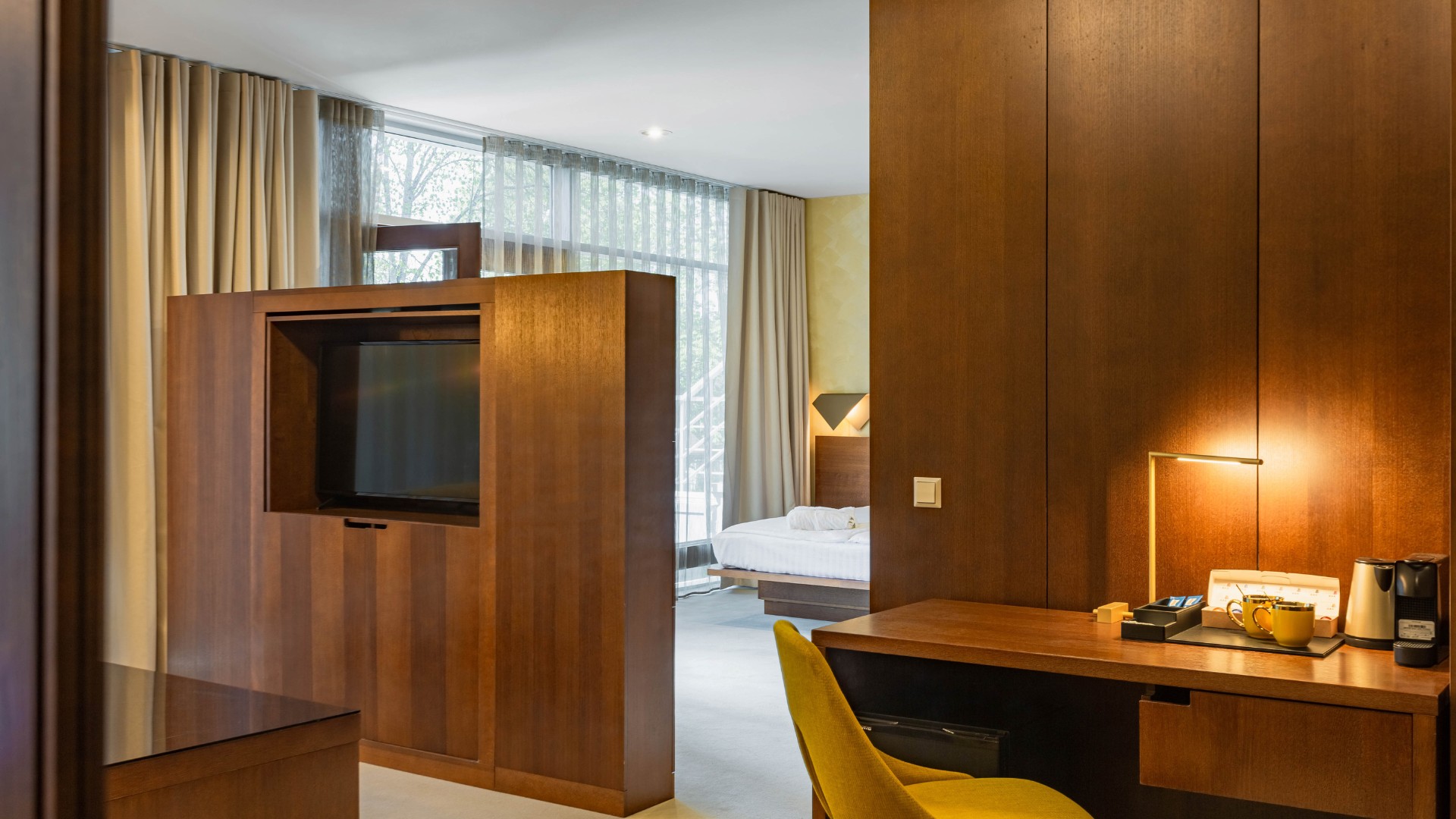 Ja Jūs novērtējāt komfortu, plašumu un greznību, tad šis numurs būs tieši tas, kas Jums vajadzīgs. 40-42 m2 numurs ar vienu divguļamo gultu, atpūtas stūrīti ar TV un skatu uz Jūrmalas nesteidzīgo ainavu. Numurā pieejama plaša vannasistaba un tvaika pirts, un āra terase ar dabīgu koka grīdas segumu un lounge krēsliem jauka mirkļu baudīšanai lasot kādu grāmatu, baudot saules peldes vai vienkārši baudot labu vīnu. Visos viesnīcas numuros un publiskajās zonās pieejams bezmaksas Wi-Fi internets.