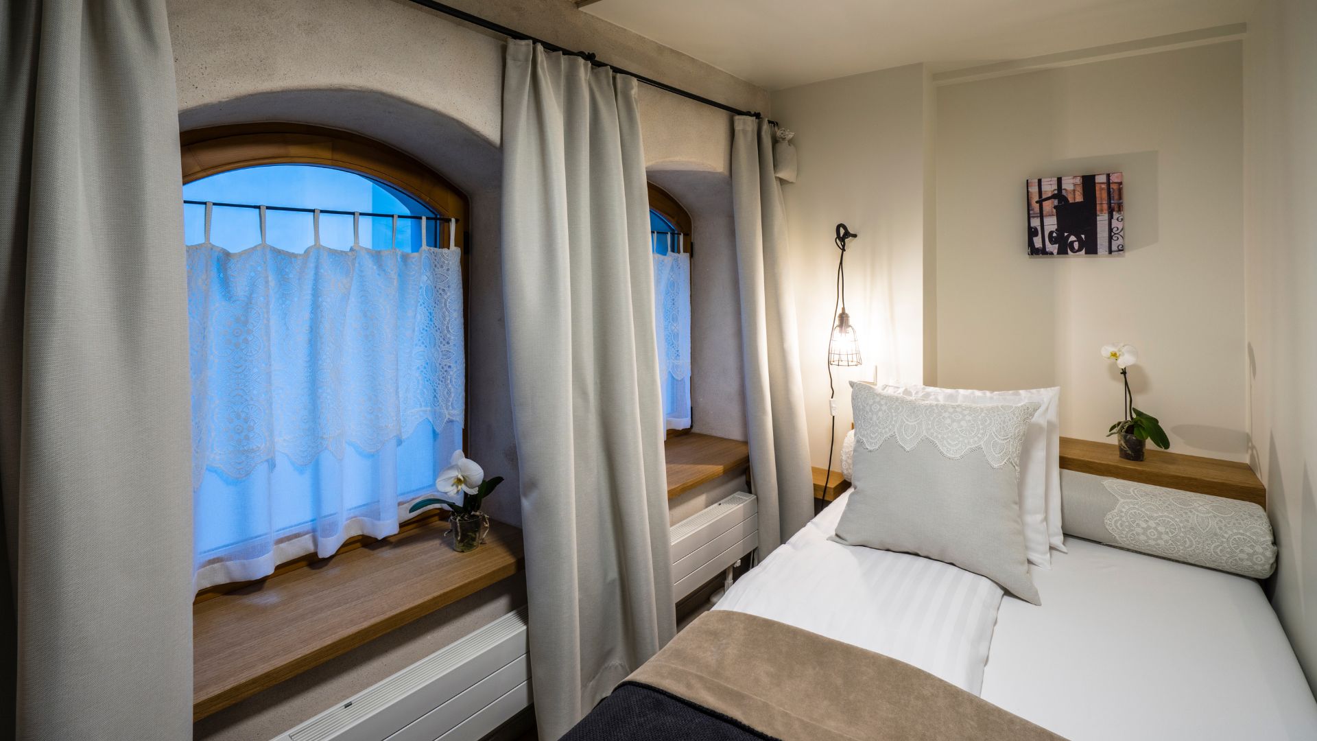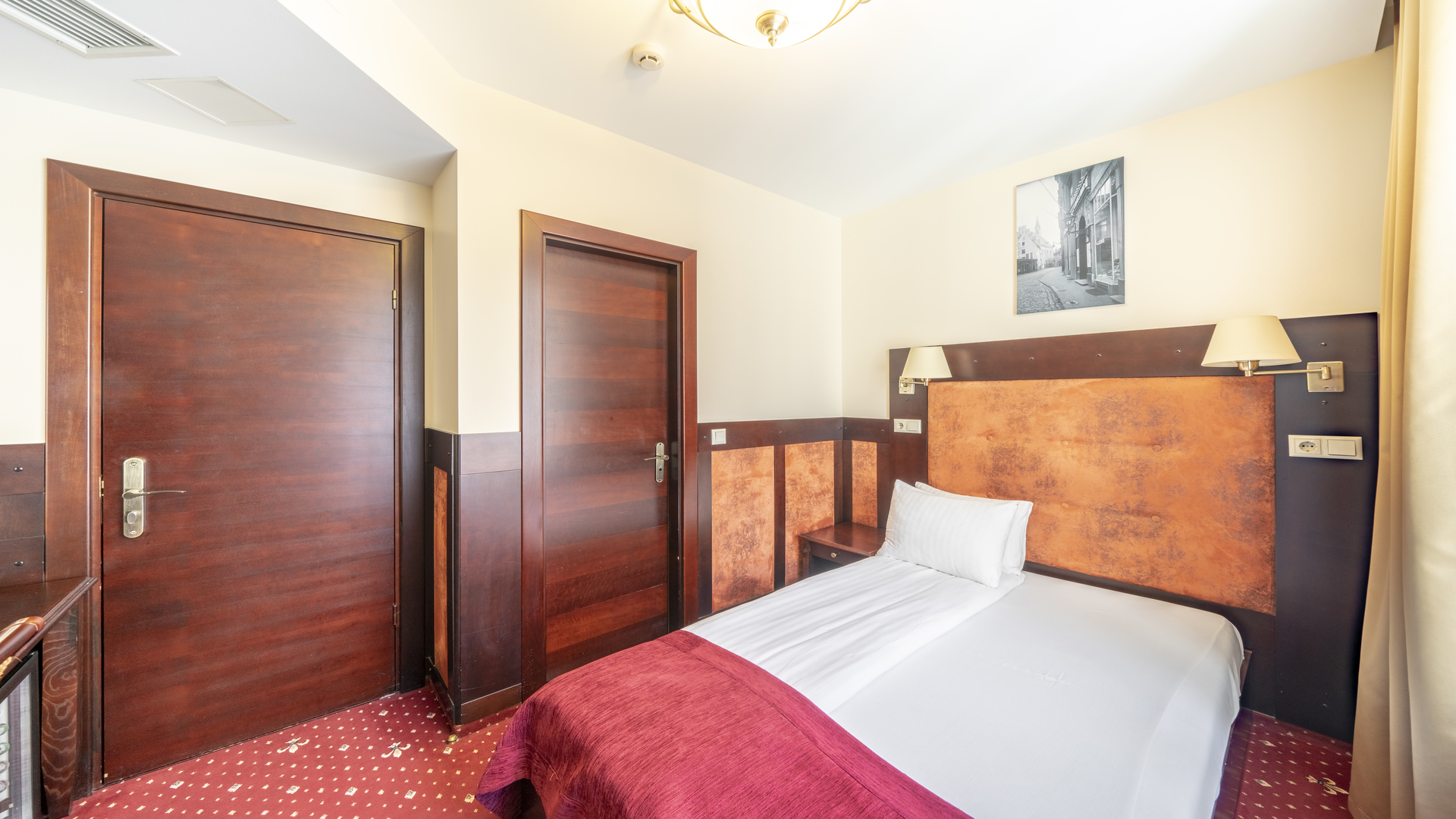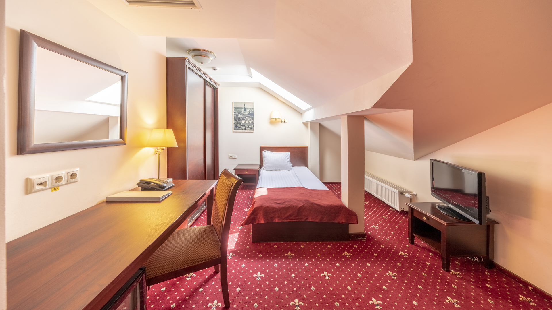 Номер в классическом стиле, средняя площадь – 11 м2. Данный номер подходит для проживания одной персоны. В номера находится – одноместная кровать, ванная комната с ванной или душем, фен, телевизор с плоским экраном, мини-бар, электрочайник, чай/кофе и беспроводной интернет.