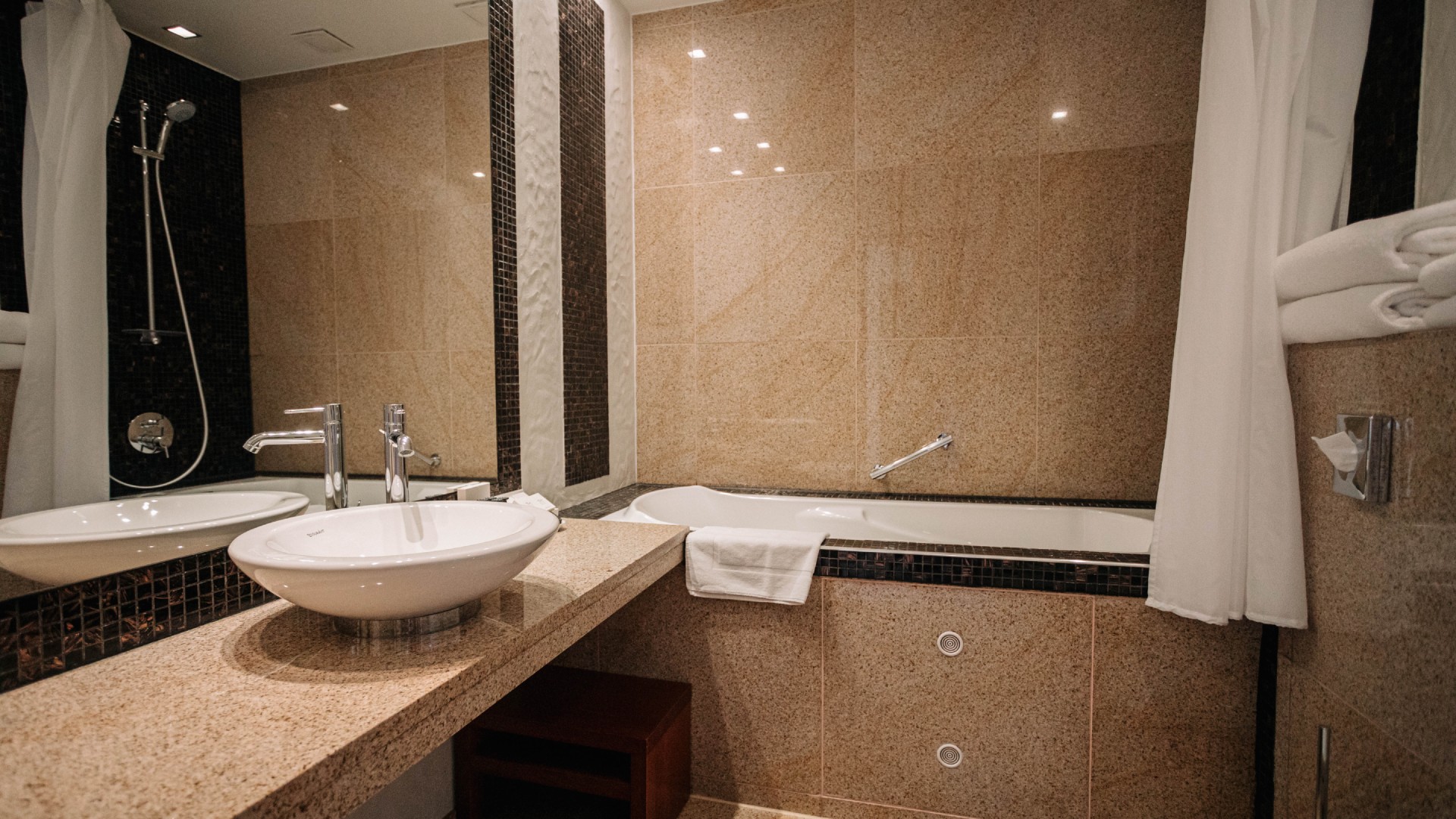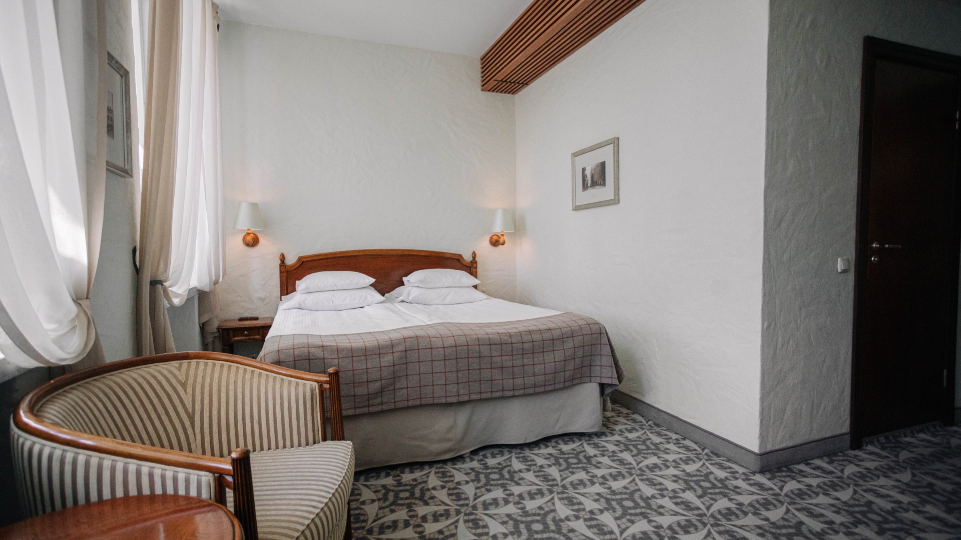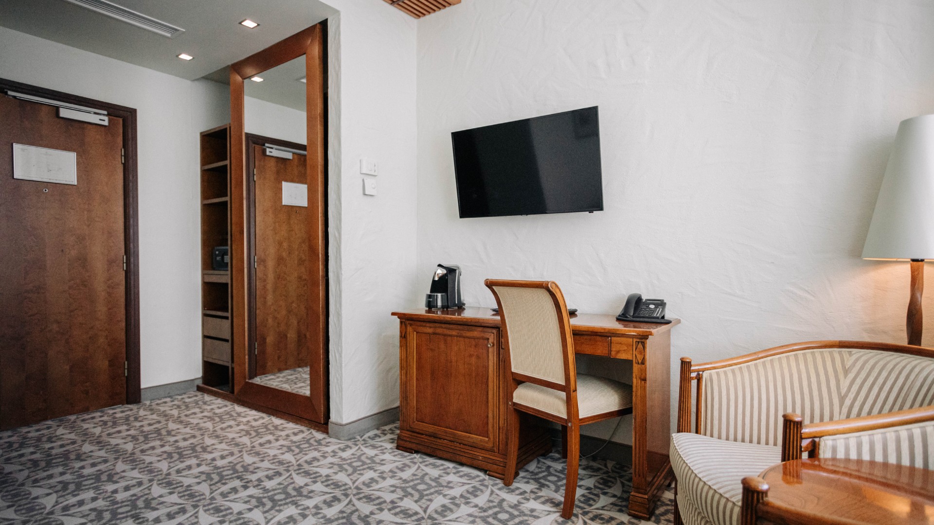 У двомісній кімнаті є одне широке ліжко або два окремих. Меблі виготовлені на замовлення в Італії. Розкішний дизайн інтер’єру в стилі Art Déco розроблено з увагою до деталей та необхідних аксесуарів, щоб ви могли по-справжньому насолоджуватися перебуванням тут: кондиціонер, міні-бар, фен, РК-телевізор, халат, тапочки. У вас є телефон із прямим набором номера та сейф із розеткою всередині, щоб ви могли спокійно залишити свій ноутбук зарядженим, якщо хочете. На всій території готелю є Wi-Fi. Розмір кімнати: 21-25 м2.